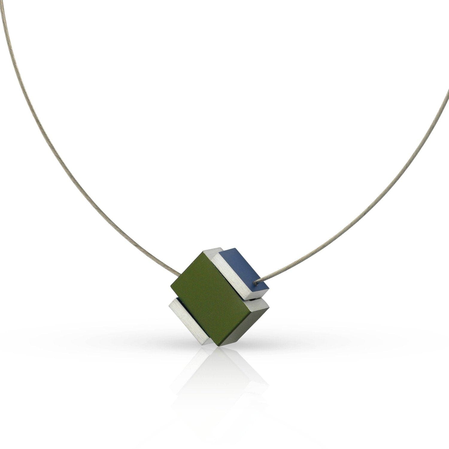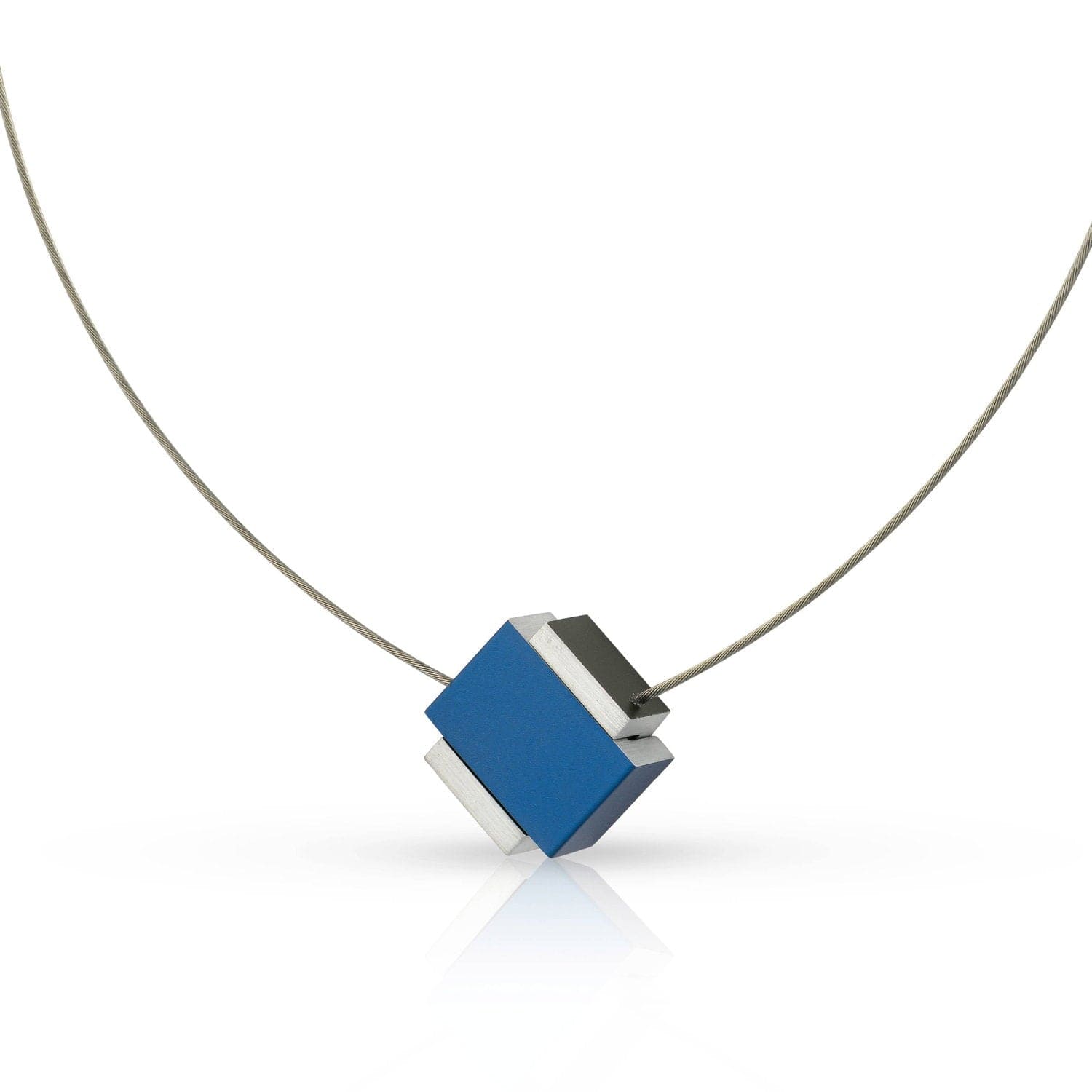 A necklace that goes with every outfit and subtly stands out. The necklace falls in a V-shape. Necklace of an open square with a closed square with magnetic closure placed in it. The magnets attract each other and with a "clic" this necklace closes. This necklace opens by removing the cube from the square. The necklace is provided with a smoothly falling stainless steel necklace wire, matte and high-gloss finished. You can endlessly combine this necklace with other matte and shiny silver-colored items from our collection. Timeless and basic in design.